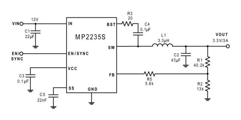 MP2235S具有外部软启动功能的 3A、16V、800kHz 同步降压变换器