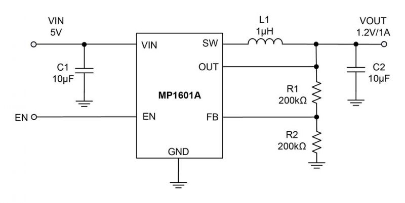 MP1601A 是一款内置功率 MOSFET 的单片降压开关变换器。在 2.3V 至 5.5V 输入电压范围内,它可以实现 1A 的连续输出电流,且具有极好的负载和线性调整率。输出电压可调节低至 0.6V。MP1601A采用强制连续导通模式(CCM)的恒定导通时间(COT)控制方案提供快速瞬态响应和低输出电压纹波,并使环路更易稳定。故障保护包括逐周期限流保护和过温关断保护。MP1601A 采用超小型 SOT563 封装,最大限度地减少了现有标准外部元器件的使用。MP1601A 适用范围广泛,是高性能 DSP、无线电源、便携式和移动设备及其他低功率系统等应用的理想之选。