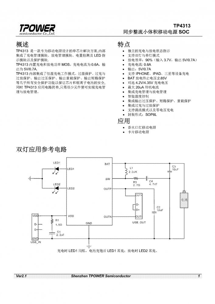 TPOWER移动电源单芯片解决方案丨QC2.0快充协议芯片TP1001丨TP4001集成小风扇/手持小风扇丨同步整流TP4301/TP4302/TP4321/TP4311/TP4303/TP4313/TP4323丨同步升压TP5187/TP5188丨锂电池充电芯片TP4054/TP4056/TP4057/TP4066 同步升压移动电源解决方案