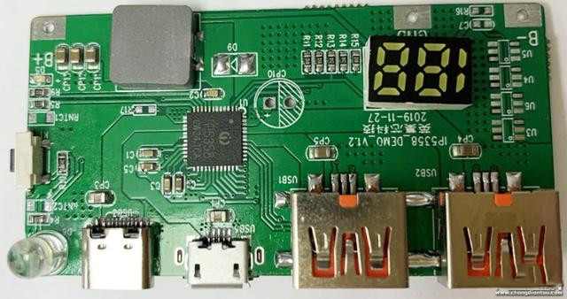 此外,英集芯IP5358内置同步升降压转换器、锂电池充电管理、电池电量指示等多种功能,并支持一个USB-C、两个USB-A以及一个MicroUSB共四个接口的控制,单独使用任何一个接口都可以支持快充,可提供最大22.5W的输出功率。